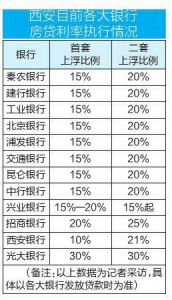 - 西安多数银行首套利率已上浮至15%